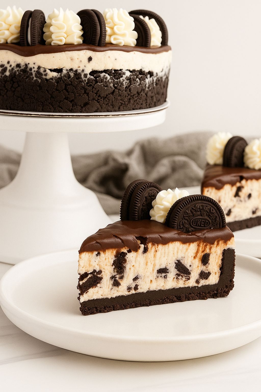 Cheesecake cremos și răcoritor, cu bază crocantă din biscuiți Oreo și cremă fină de brânză naturală, mascarpone și frișcă. Gust bogat si echilibrat ,de note de caco si vanilie. Desert artizanal, realizat manual în laboratorul Cofetăriei Karamel Cake.